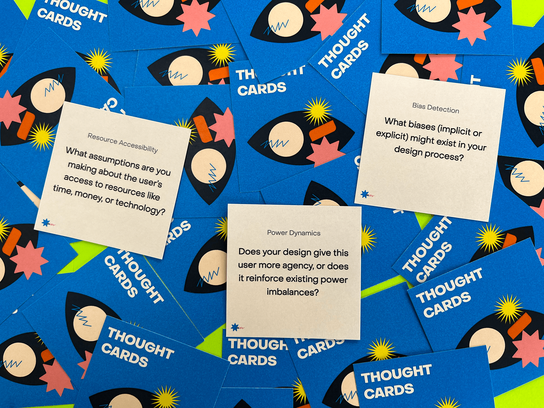 Then you sit with that profile and ask: Does our design actually work for this person in their life, with their constraints? The Thought Cards push the conversation further, prompting teams to surface tensions and challenge assumptions specific to their context. The format is intentionally flexible. Add cards, swap them, build new ones. If the conversations they surface are tough, that means this toolkit actually works.