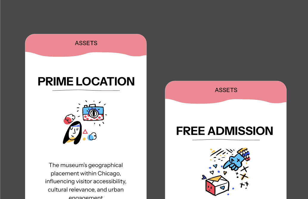 The Design Museum of Chicago is a design-focused, non-profit organization located in downtown Chicago. Despite hundreds of monthly walk-in visitors, it lacked a structured way to sustain engagement beyond the first visit. The challenge was to reimagine how the museum could convert first-time discovery into deeper relationships, stronger membership value, and more resilient revenue pathways.